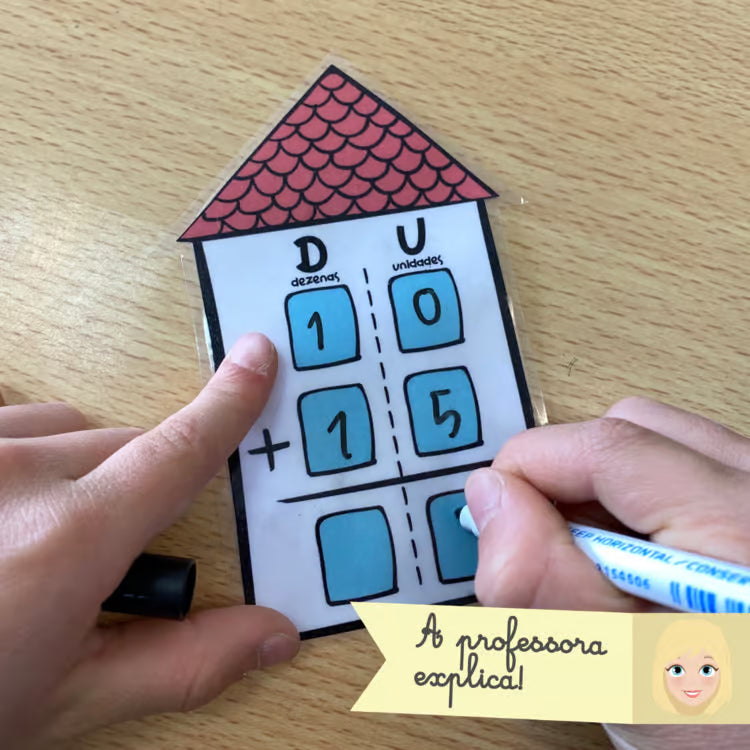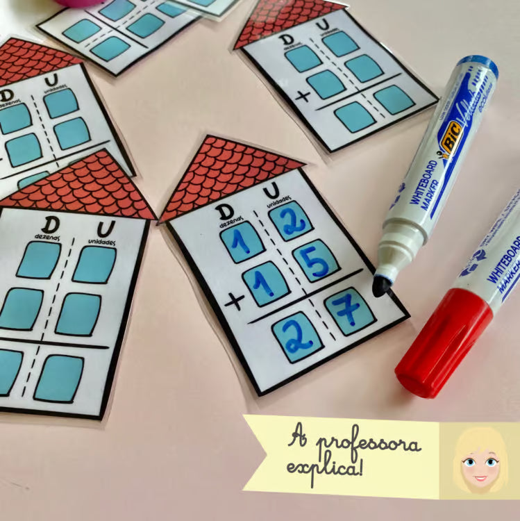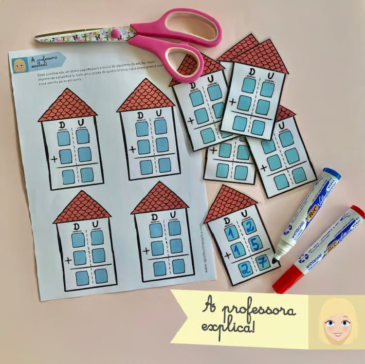 Na minha sala, depois de recortar as casinhas, plastifiquei-as.