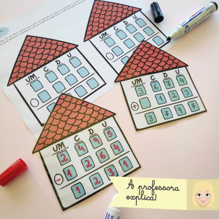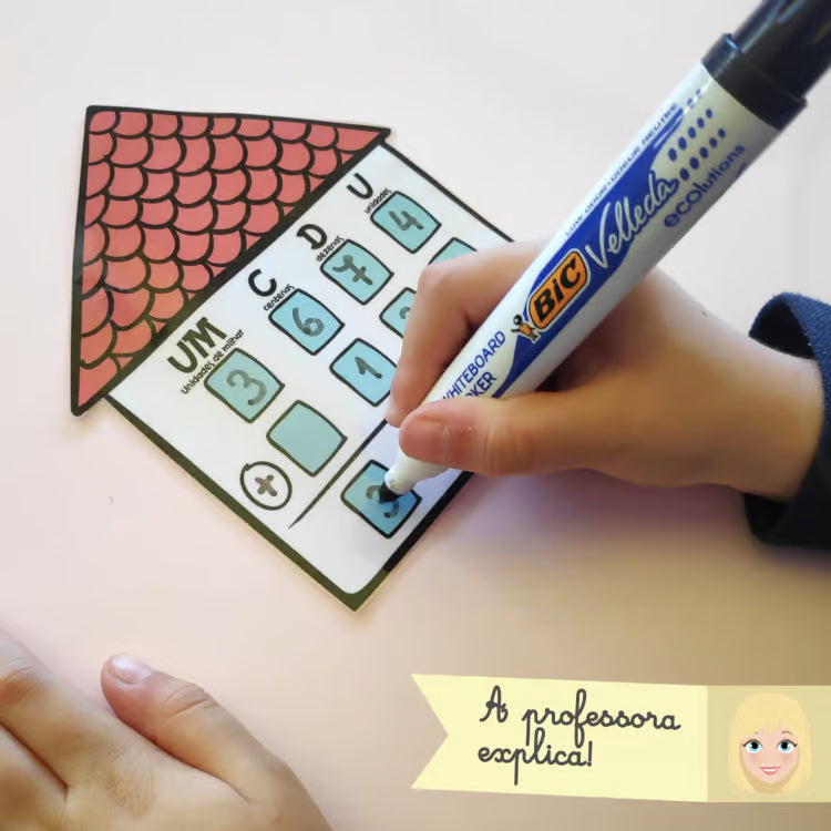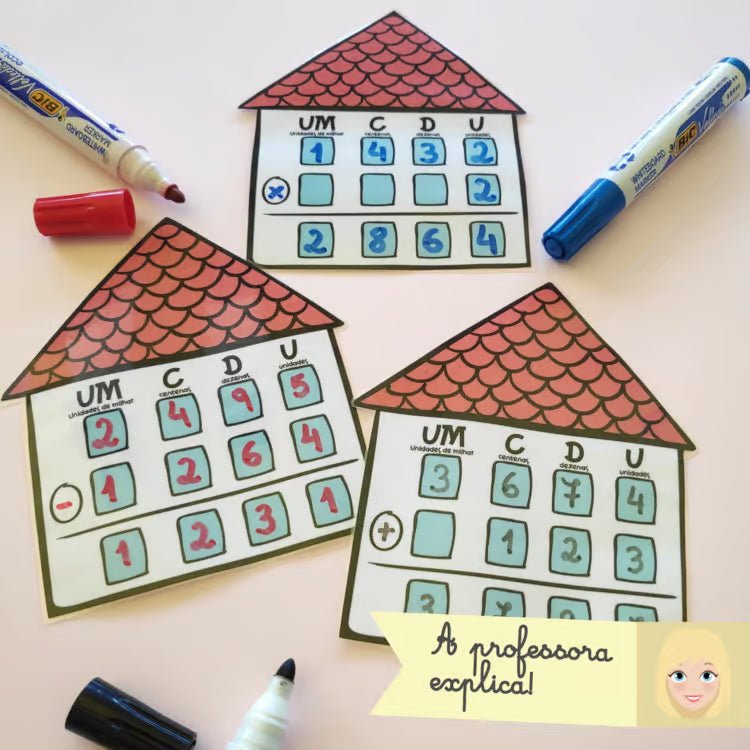 Desta vez, as casas podem ser usadas para fazer adições, subtrações e até multiplicações simples até à ordem das Unidades de Milhar!